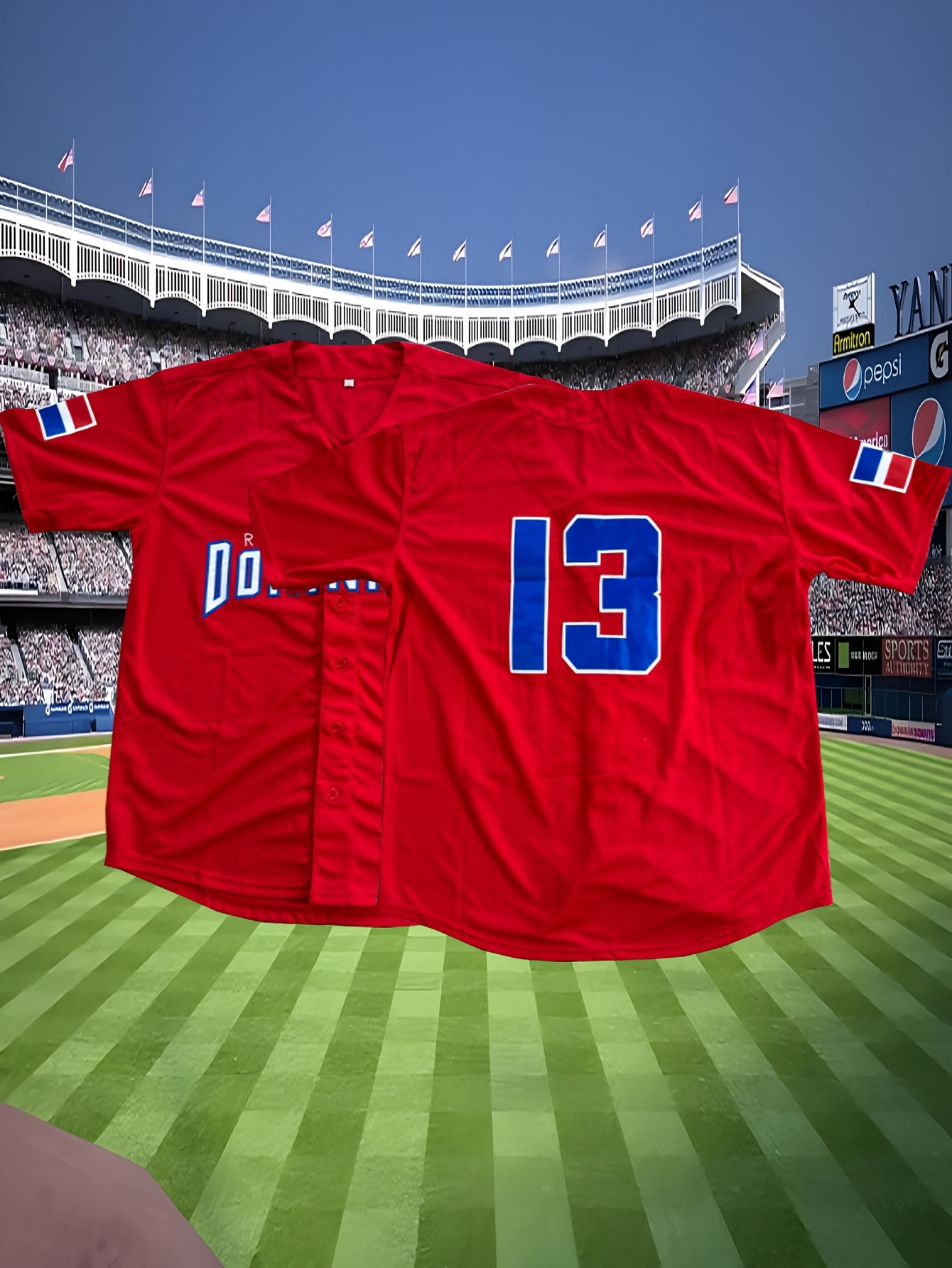 Men'S American # 13 Red Baseball Jersey, Suitable For Team Training And Street Activities, Worn In Spring, Summer, And Autumn, Size S-3XL