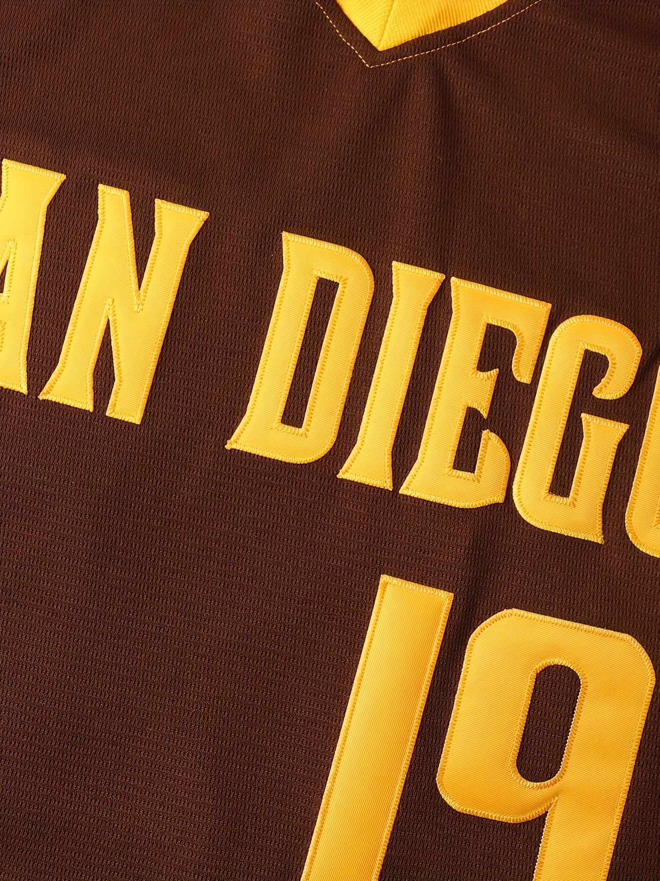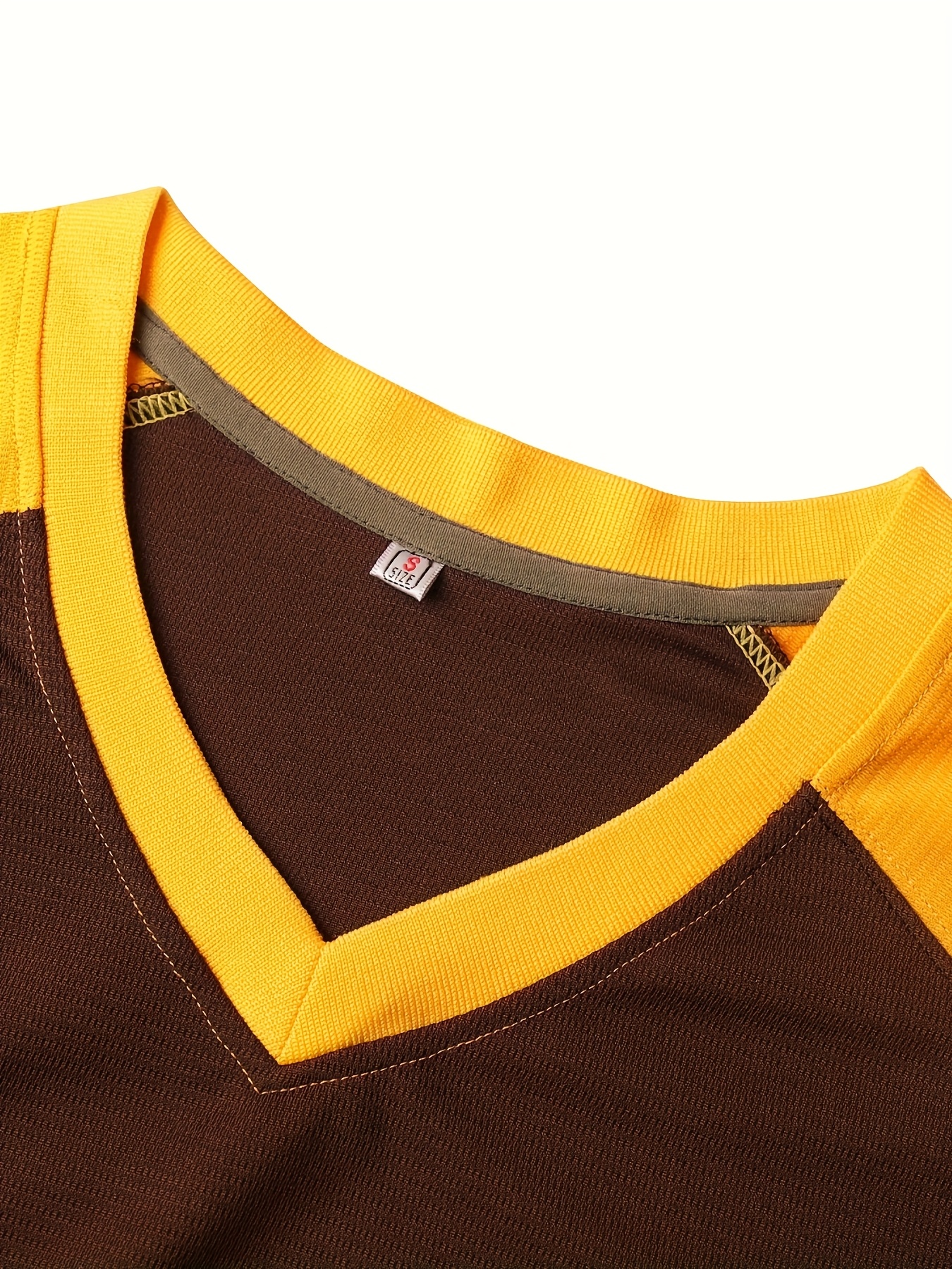 Men's Baseball Sweatshirt #19 - Brown V-Neck Polyester Pullover with Yellow '19' & Letter Design, Loose Fit for Casual, Team Sports, Outdoor Activities (S-3XL), Versatile Pullover, Relaxed Fit Top, Quality Stitching