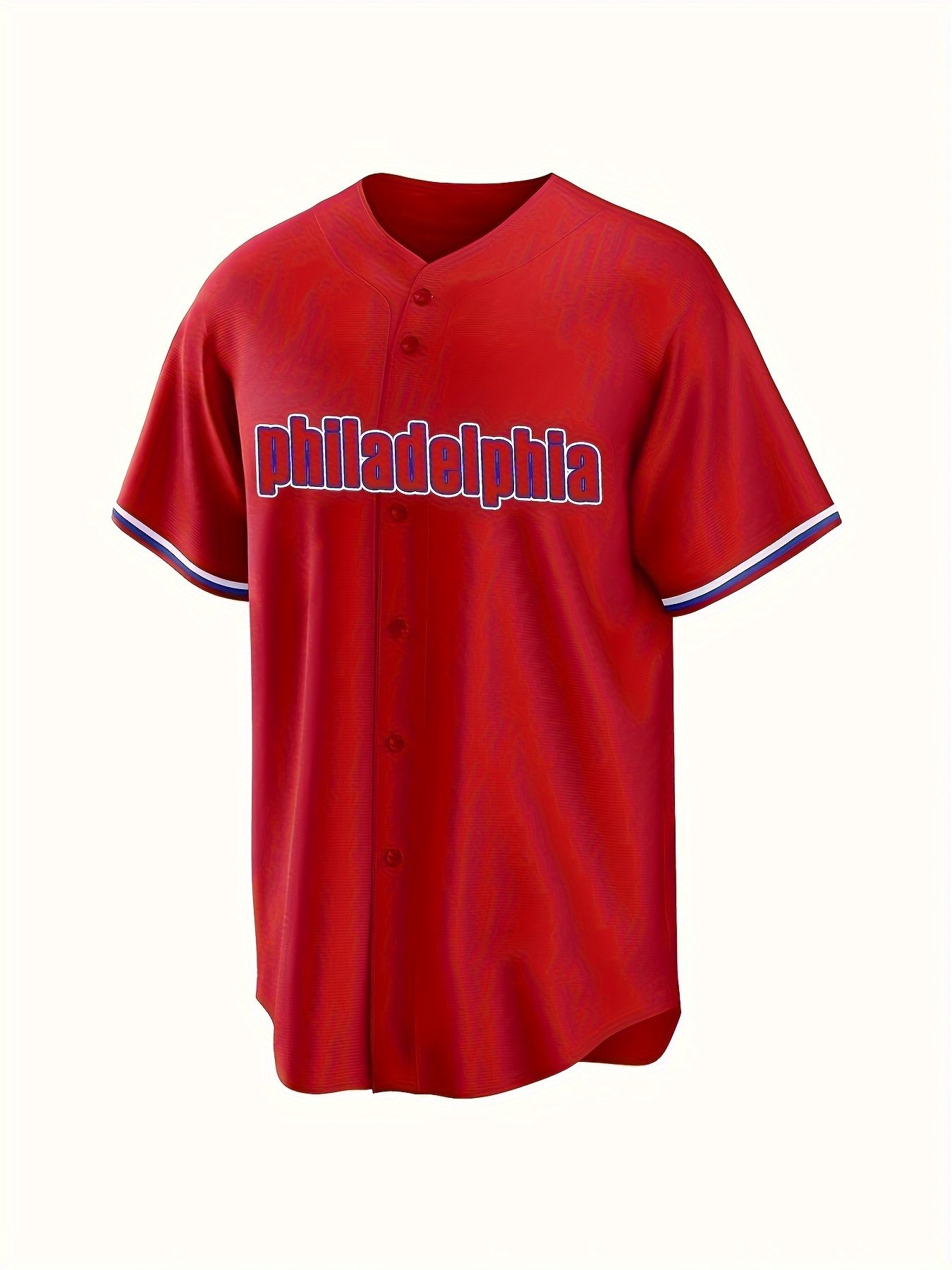 Men'S Retro PHILADELPHIA #3 Embroidery Design Short Sleeve V-neck Loose Button Up Shirt, Men'S Summer Baseball Jersey