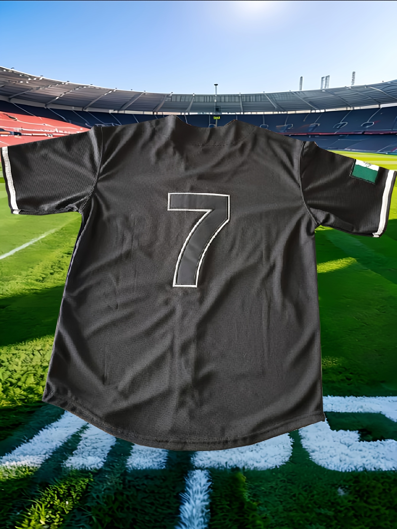 Men'S V-neck Baseball Jersey With Double Needle, Black, 7 Embroidered Letters, Polyester Knit Fabric Buttons
