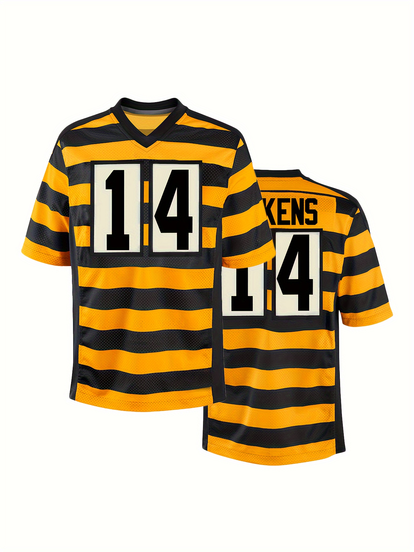 Men's Yellow #14 Rugby Shirt - Breathable V-Neck Short Sleeve with Embroidered Lettering, 100% Polyester Loose Fit Training & Casual Shirt for All Seasons, Outdoor Activities, Parties - Machine Washable