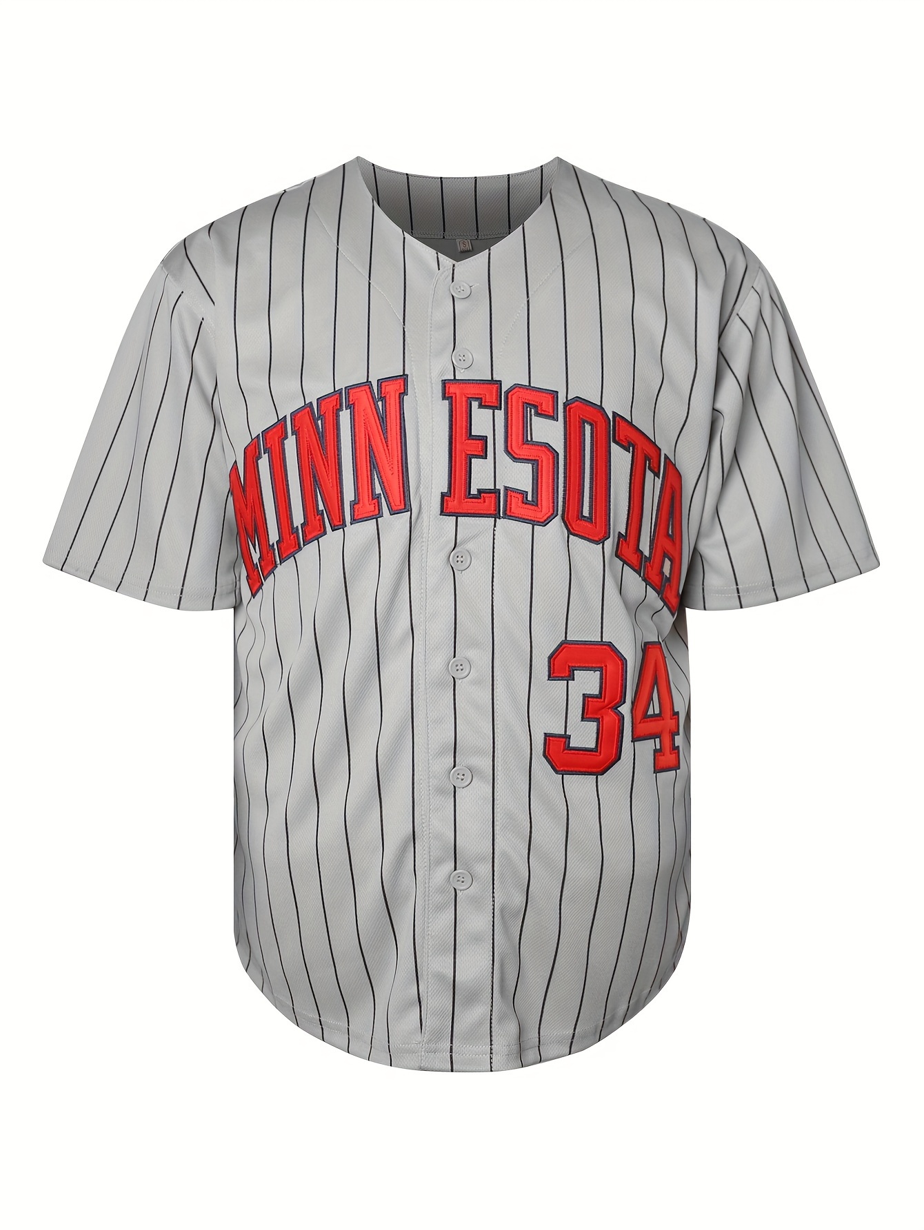 Retro Style Men's Baseball Jersey with Stripes, Breathable Polyester Button-Up Uniform with Embroidered 34 Number, Short Sleeve V-Neck Sports Top for Training, Parties, And Casual Wear
