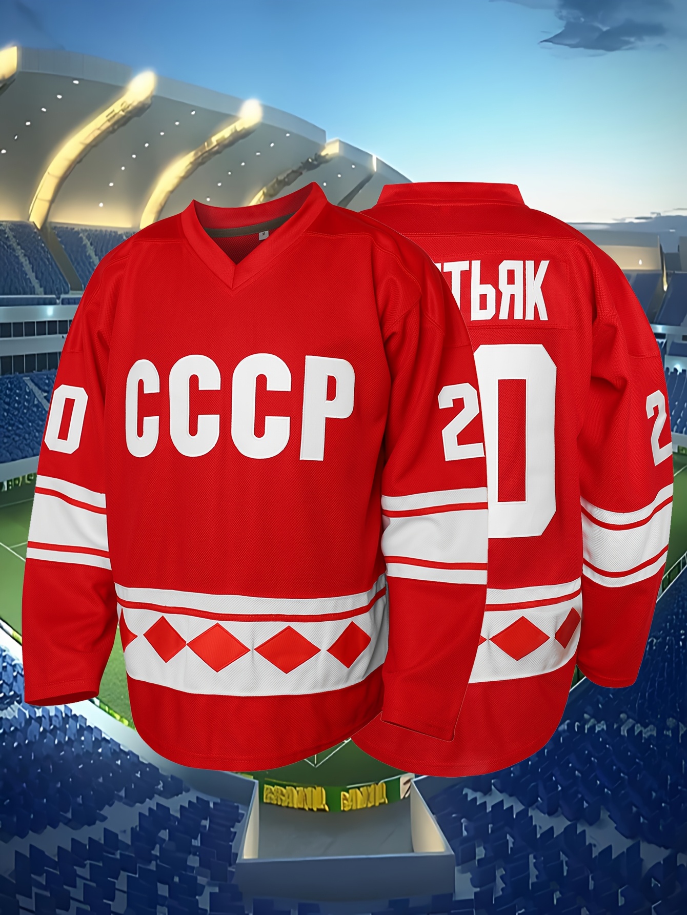 Ice Hockey Jersey 20 Sets of Hoodies and Sweatshirts, Polyester Stitched V-Neck, Micro-Flexible Knitted Fabric, Men's Loose-Fit Sportswear, Suitable for Casual, Outdoor, Training and Beach, Red S-3XL