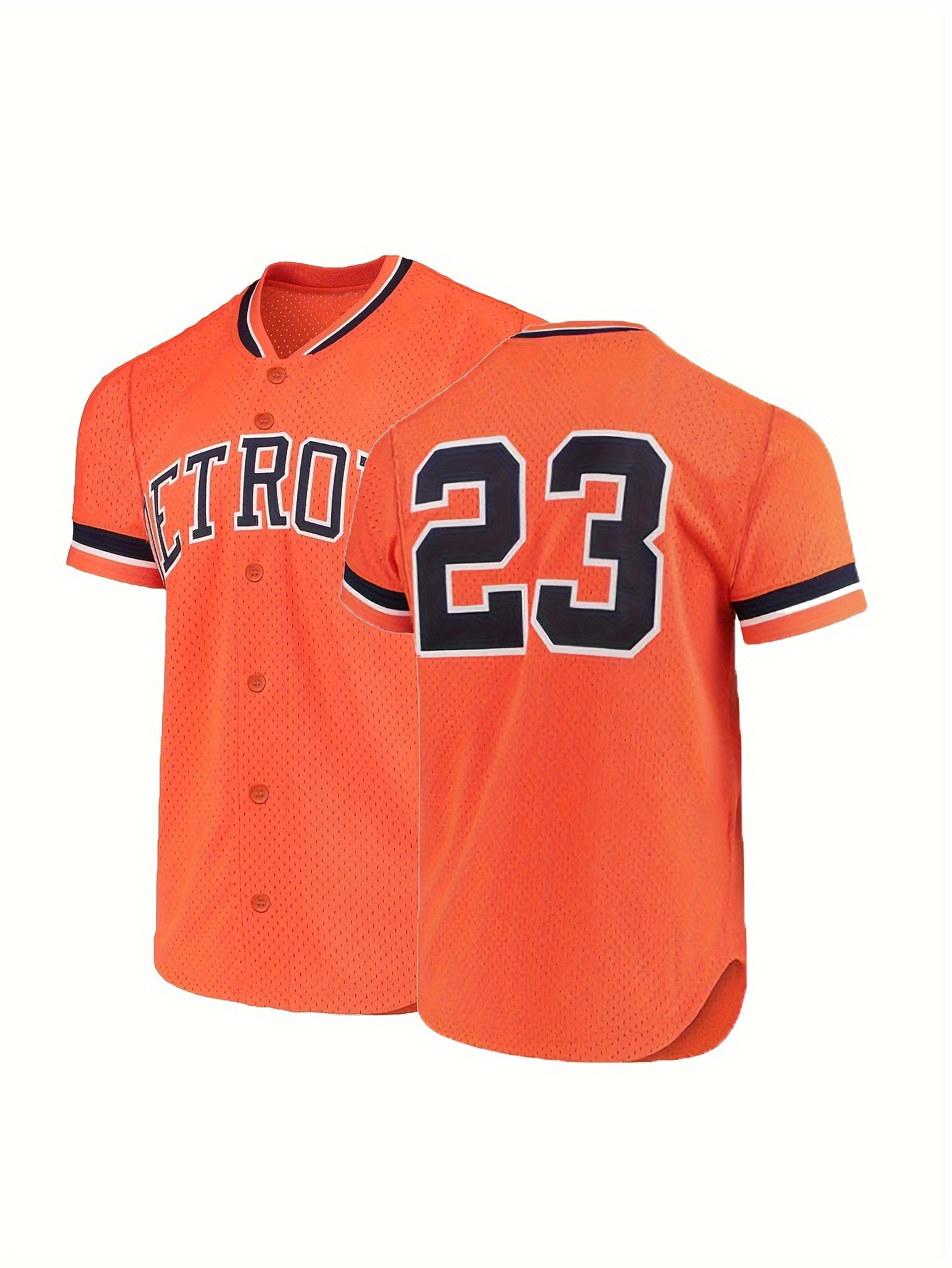 Letter And Number 23 Embroidery, Men'S Short Sleeve V-neck Baseball Jersey, Comfy Top For Training And Competition