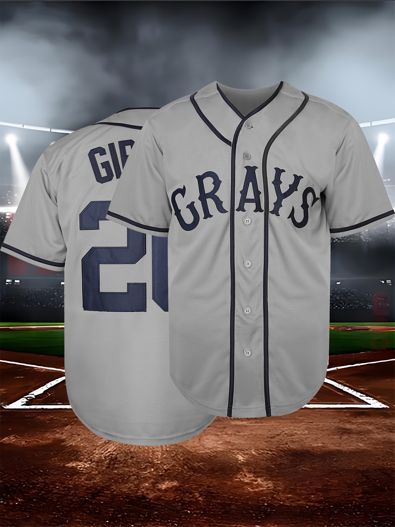 Men's #20 Embroidered Gray Baseball Jersey - Breathable V-Neck, 100% Polyester, Loose Fit for Sports, Casual & Outdoor Wear, Sizes S-3XL