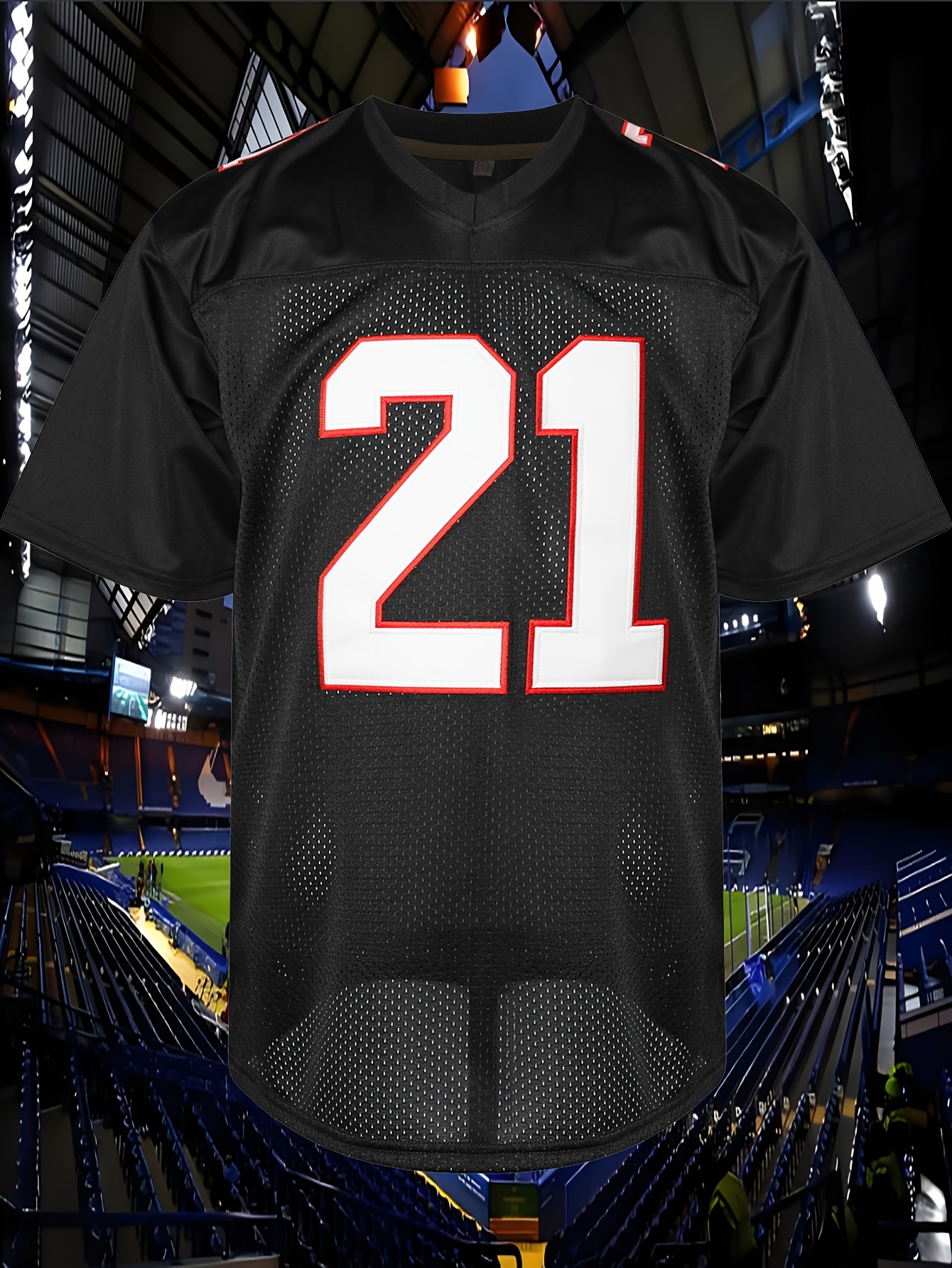 Men's #21 Black American Football Jersey - V-Neck,, Breathable Polyester for Training, Team Sports & Casual Wear - Sizes S to XXXL, Sports Jersey | Sporty Look | Polyester Fabric