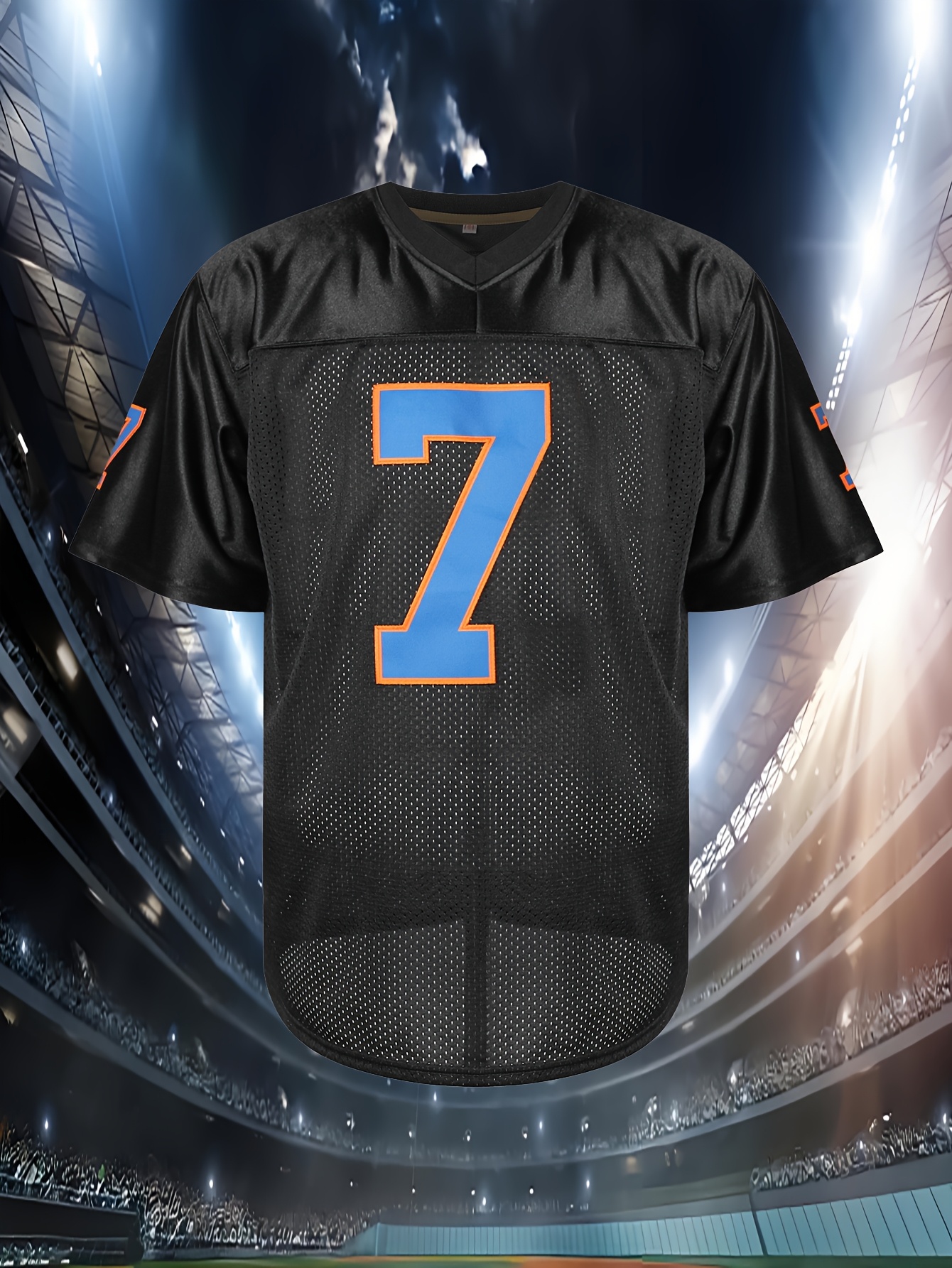 Men's #7 NYC Rugby Jersey - Breathable & Comfortable V-Neck Sports Shirt for Training, Casual Wear & Outdoor Activities, Sizes S-3XL, Black with Orange & Blue Accents