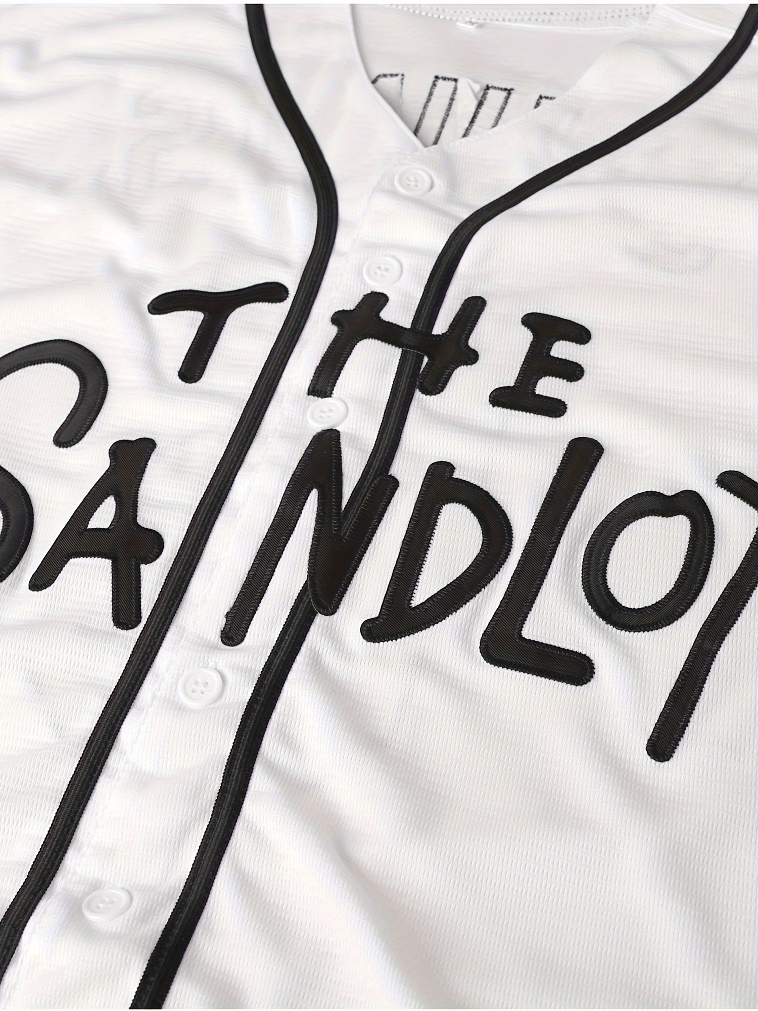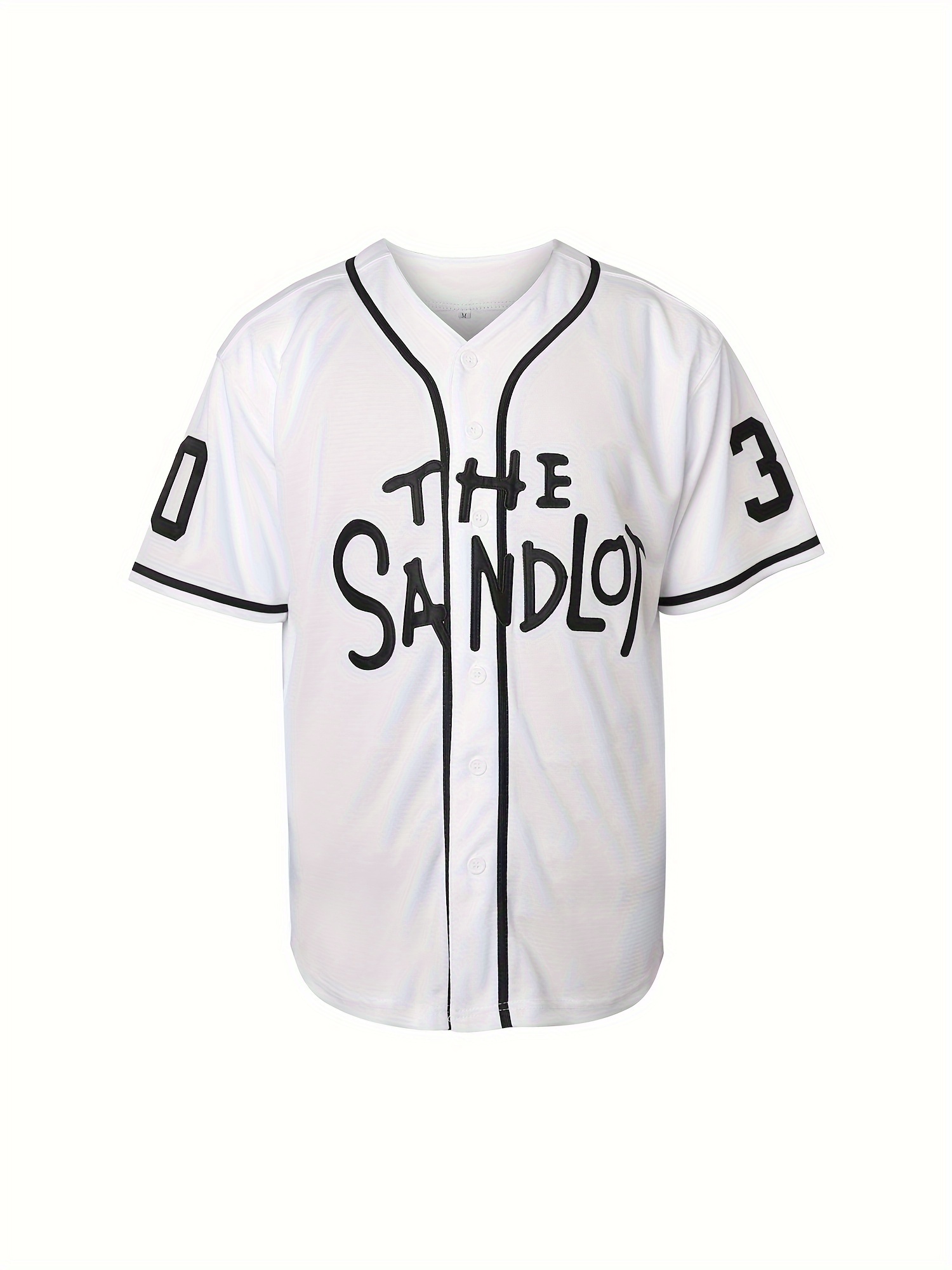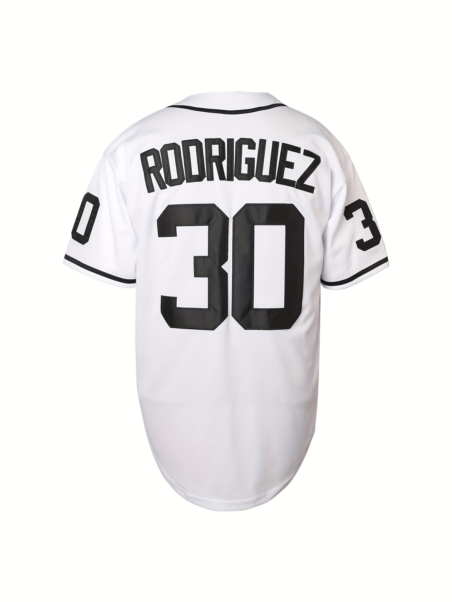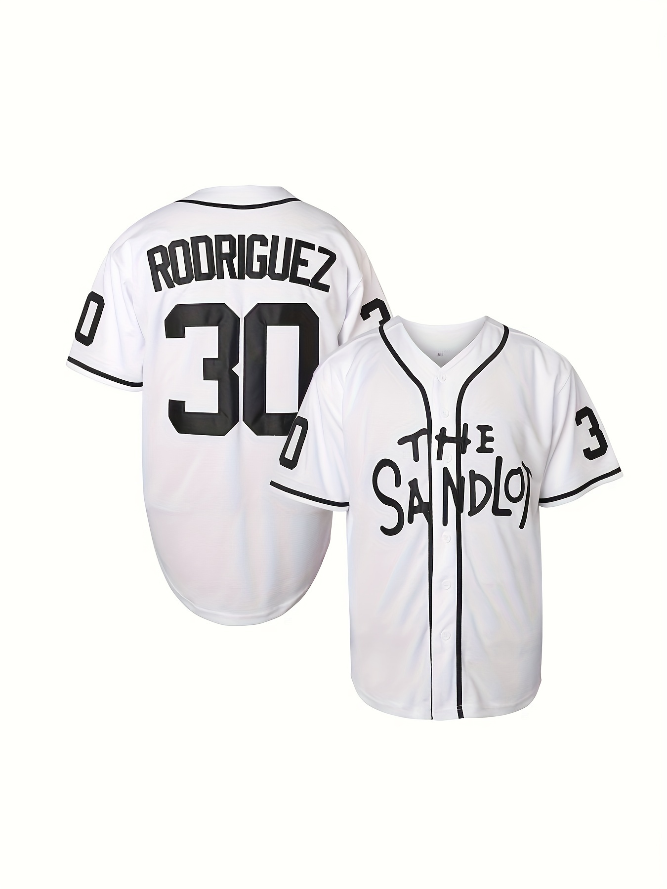Men's Retro Baseball Jersey #30 - Embroidered "THE SANDLOT" V-Neck Button-Up Shirt, Loose Fit Short Sleeve with Rodriquez Nameplate, Machine Washable All-Season Casual Sportswear for Team Sports & Holidays, Outdoor Activity Apparel, Durable Sportswear