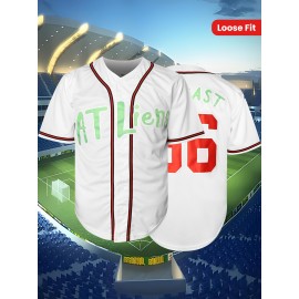 Men'S # 10 Red Baseball Shirt With Embroidered Letter V-neck Button Polyester Fiber Machine Washable - Perfect For Sports And Casual Size S-3XL