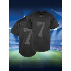 Men's #0 Performance Jersey, Breathable Polyester Sports Shirt, V-Neck Short Sleeve, Embroidered Athletic Top for Casual, Running, Training & Outdoor Activities - All Season Wear