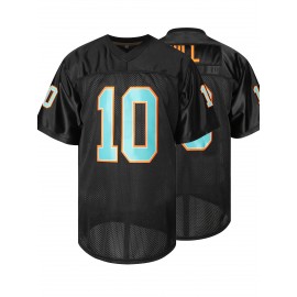 Men's #10 Embroidered Black Football Jersey - Breathable, Casual V-Neck Sports Shirt for All Seasons