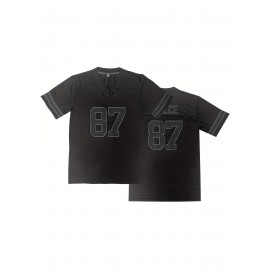 Men'S #87 Breathable Rugby Jersey - V-Neck, Short Sleeve, Classic Embroidered American Football Shirt for Training & Casual Wear
