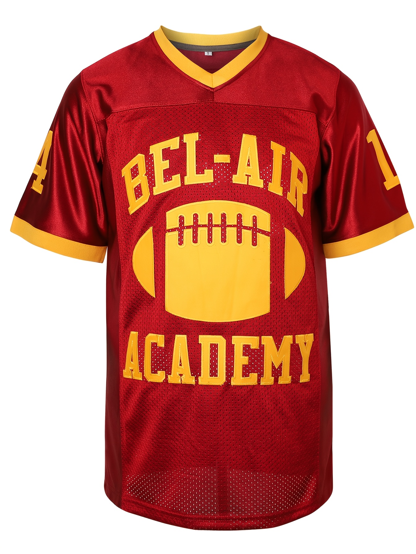 1pc Bel-Air Academy Men'S Football Jersey - All-Stitched Embroidery, V-Neck, Loose Fit, Breathable Polyester, Sports Style for Casual, Team Sports, Outdoor Activities - Versatile for All Seasons