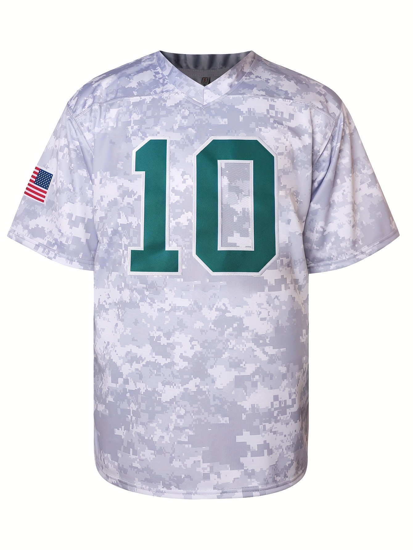 Men's #10 Camouflage American Football Jersey - V-Neck,, Loose Fit for Spring, Summer, Fall Sports & Casual Wear, Sizes S-XXXL