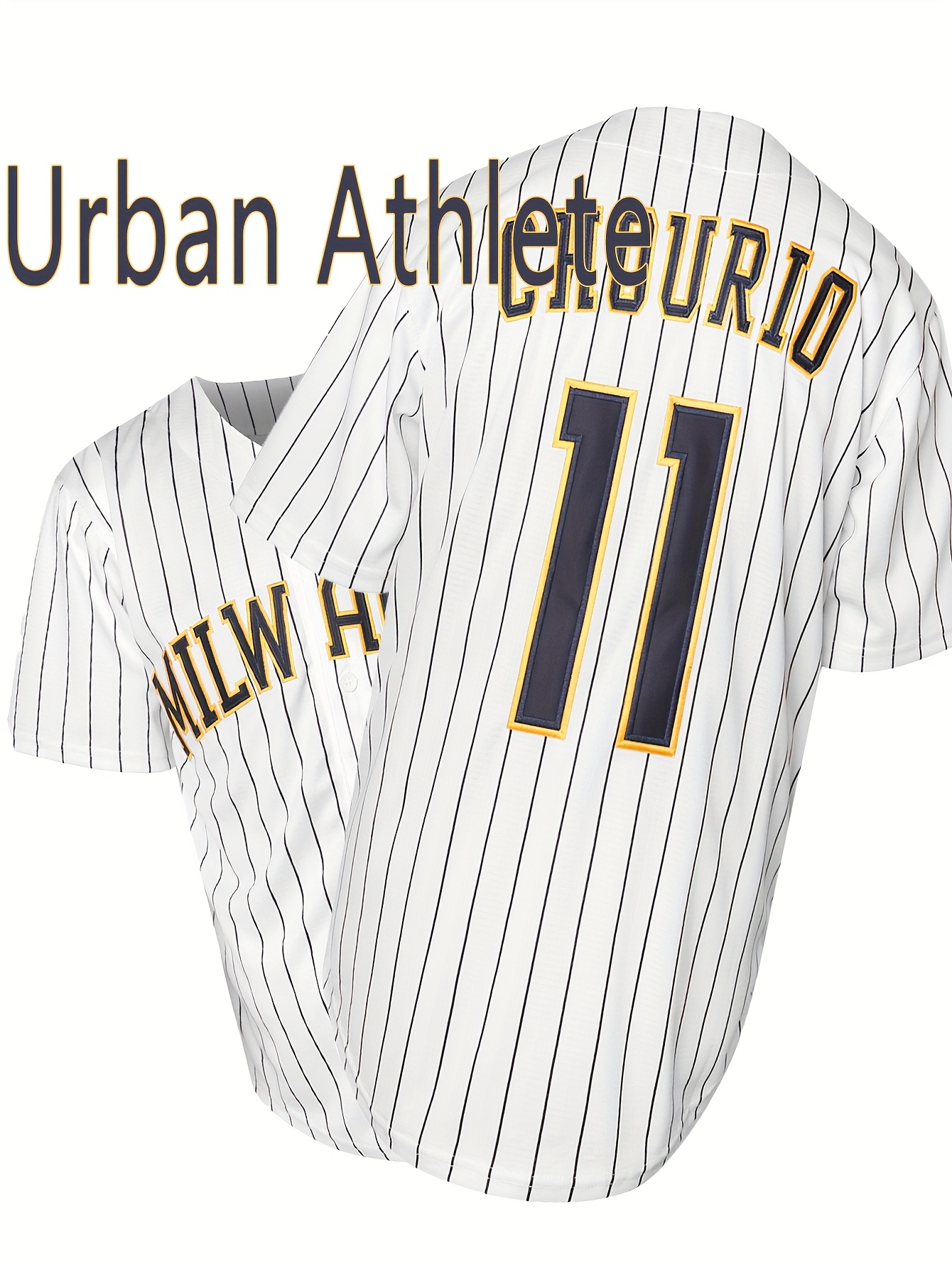 Men's #11 Embroidered Striped Baseball Jersey - V-Neck, Button-Up, Breathable Polyester - Perfect for Sports & Outdoor Activities