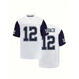 Men'S #12 Breathable Rugby Jersey - White & Navy Blue V-Neck, Short Sleeve with Classic Embroidery, Polyester Mesh Fabric for Training & Sports, Rugby Accessories