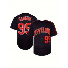Men'S #99 Embroidered Baseball Jersey - V-Neck, Short Sleeve, Polyester - Perfect for Sports & Casual Wear, Deep Blue