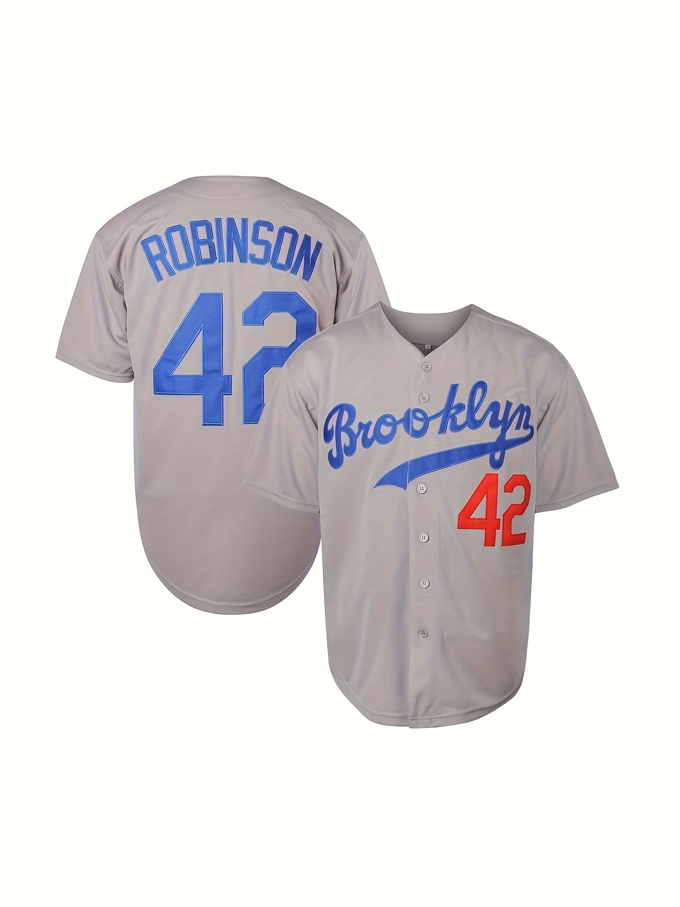 Men'S Retro Letter #42 Embroidery Design Short Sleeve V-neck Loose Button Up Shirt, Men'S Summer Baseball Jersey