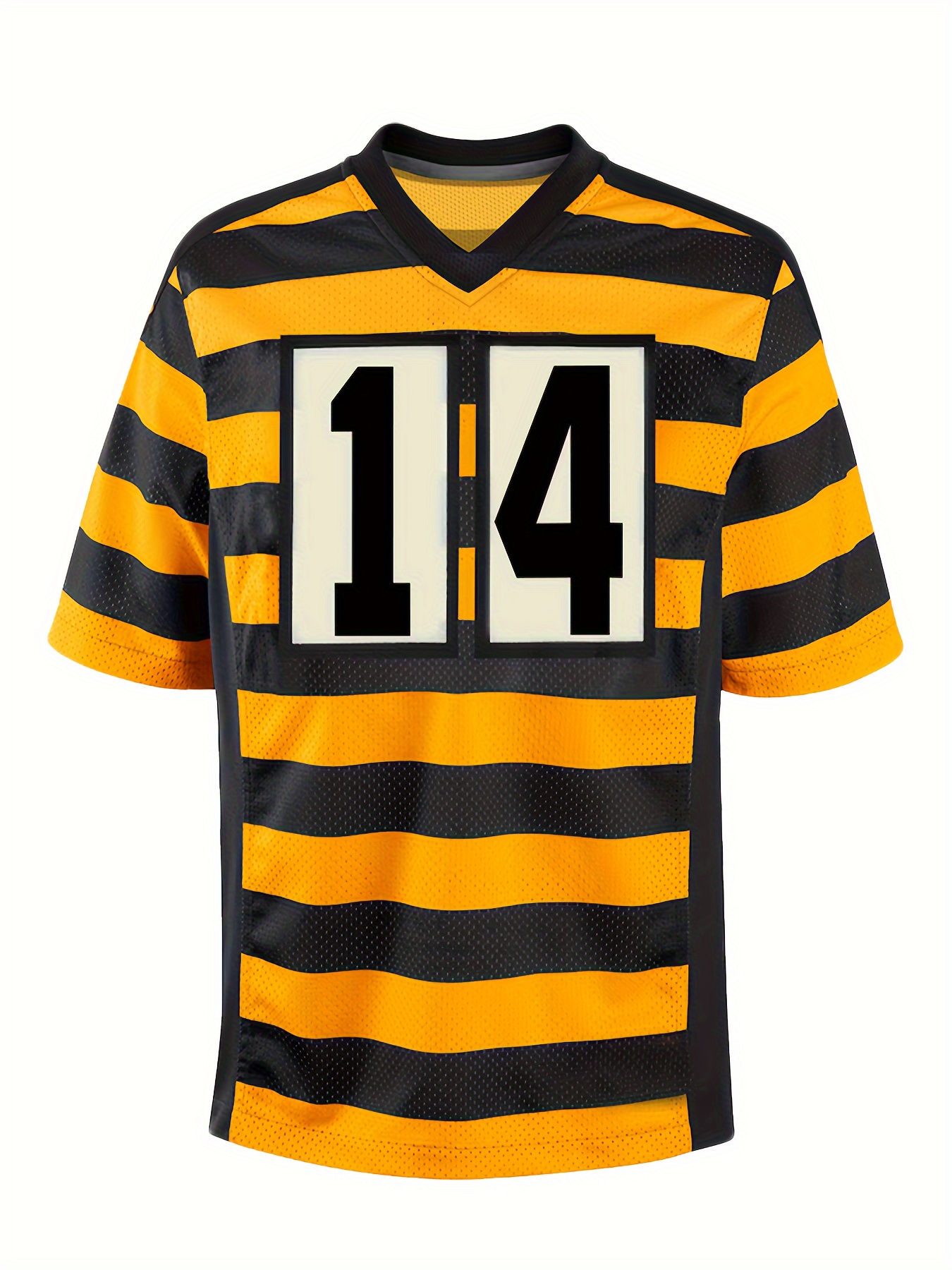 Men's Yellow #14 Rugby Shirt - Breathable V-Neck Short Sleeve with Embroidered Lettering, 100% Polyester Loose Fit Training & Casual Shirt for All Seasons, Outdoor Activities, Parties - Machine Washable