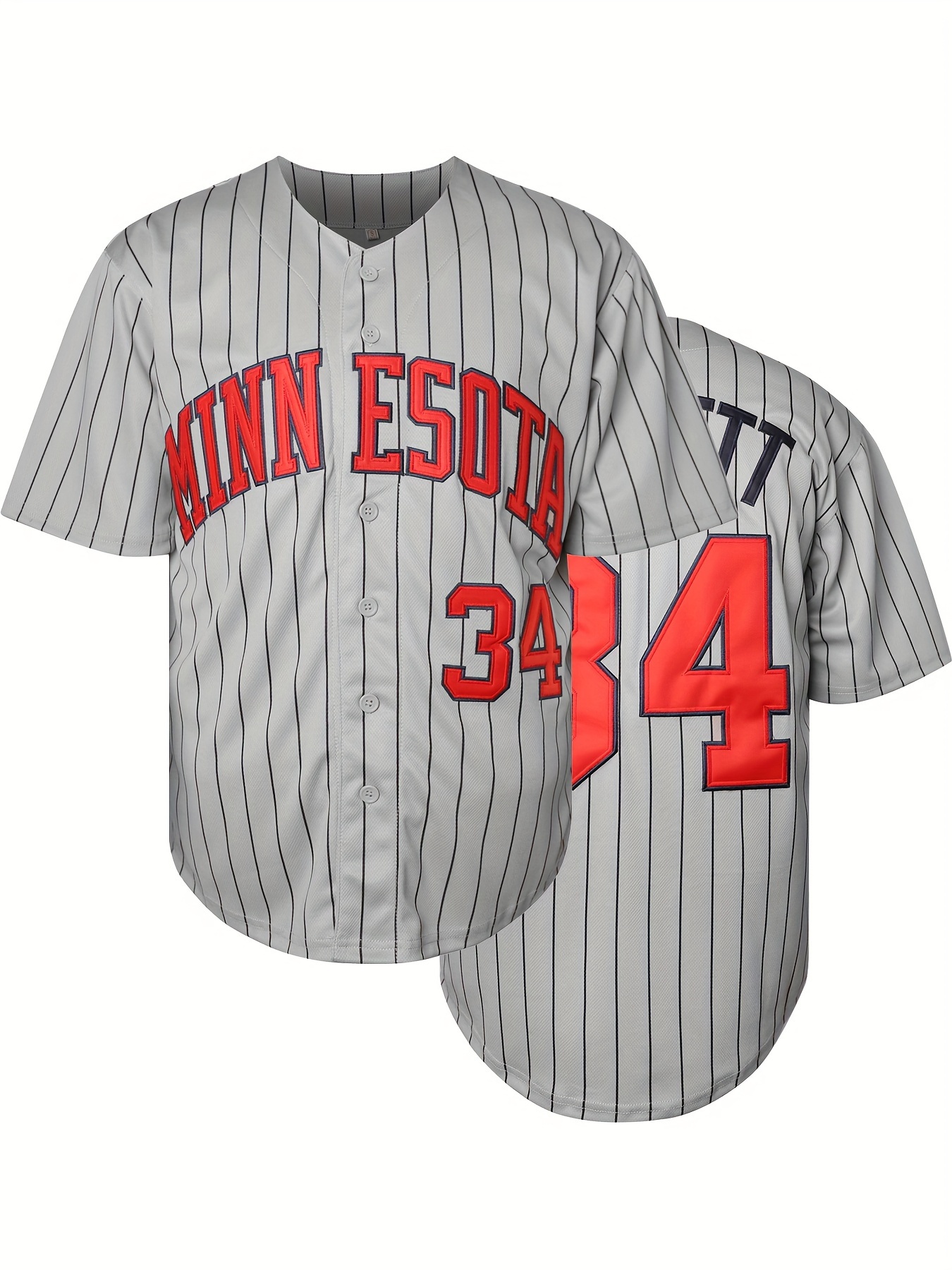 Retro Style Men's Baseball Jersey with Stripes, Breathable Polyester Button-Up Uniform with Embroidered 34 Number, Short Sleeve V-Neck Sports Top for Training, Parties, And Casual Wear